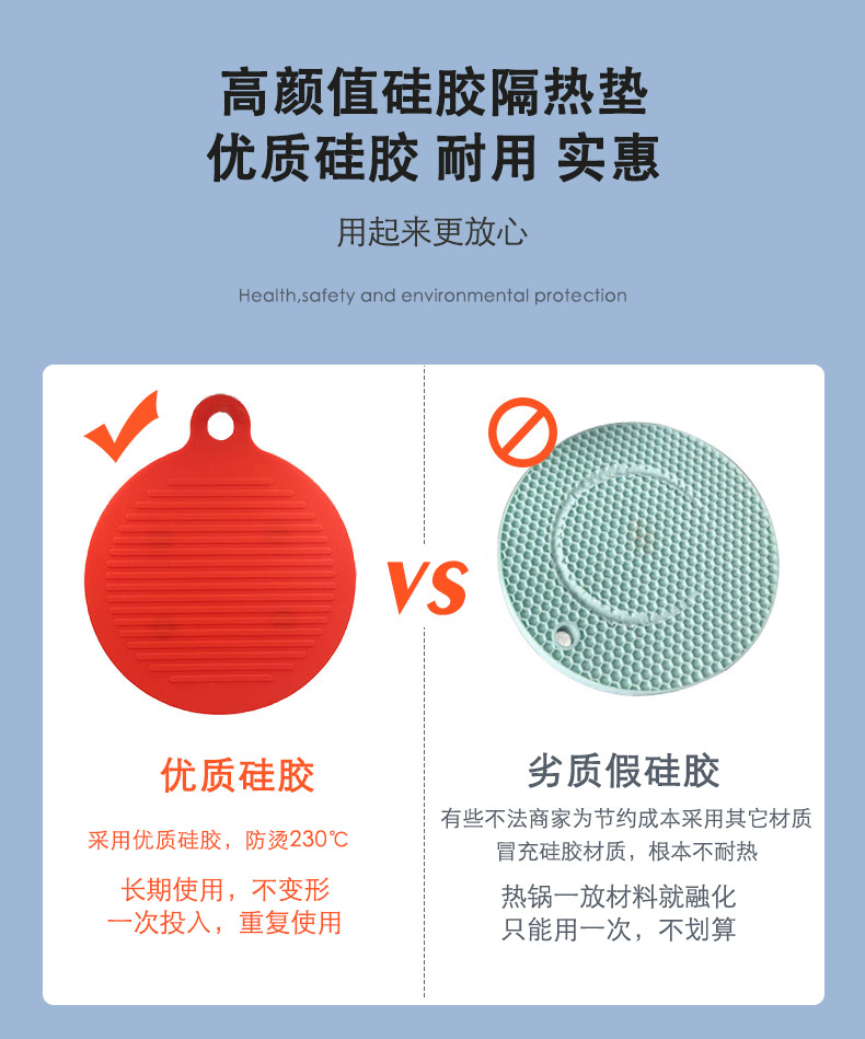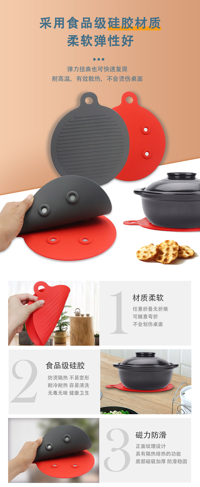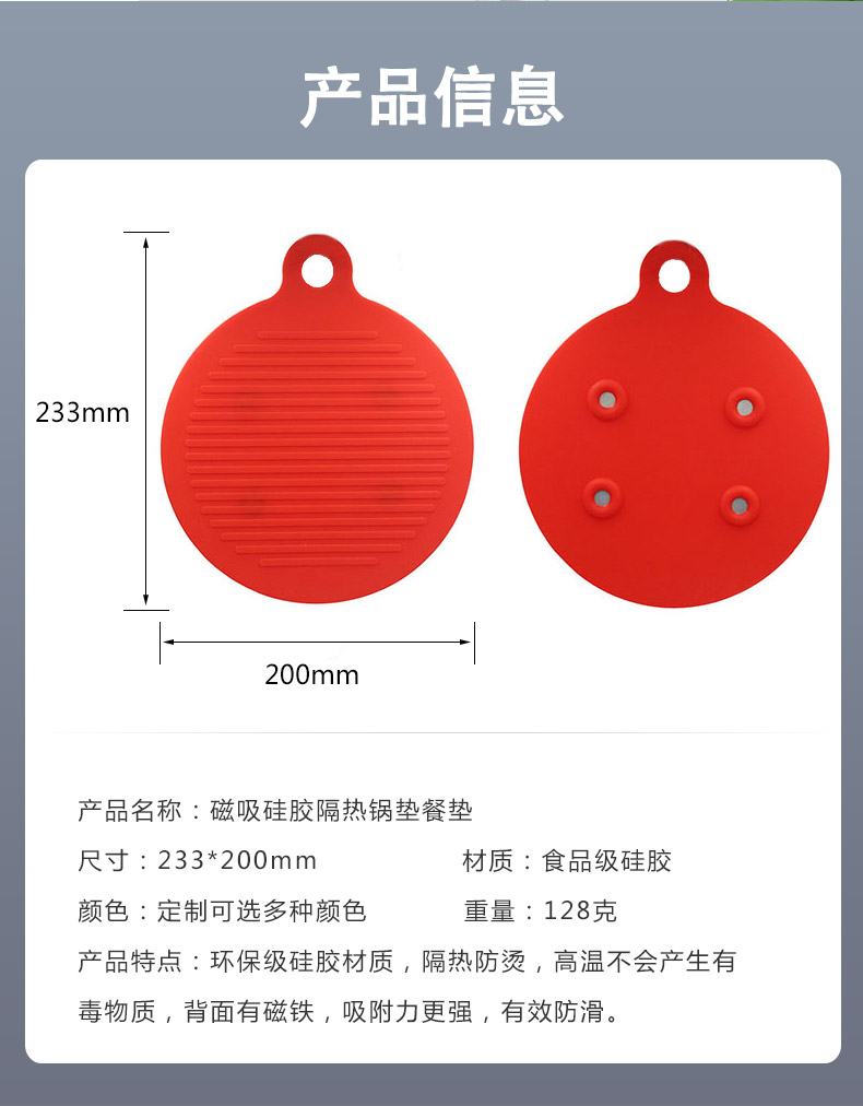 【簡(jiǎn)介】圓形磁鐵硅膠隔熱餐墊 防燙墊 廚房防水防滑鍋墊 硅膠餐墊