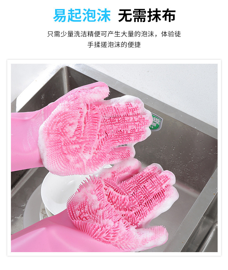 3.手套易清洗徹底不滋生細(xì)菌,這一點(diǎn)是很多清潔用品都做不到的,油脂、醬油、醋、污垢等等都無法有力附著在硅膠表面,而其他比如鋼絲球、海綿塊、洗碗布等等材質(zhì),都做不到,使用硅膠洗碗手套實(shí)在是讓人放心。