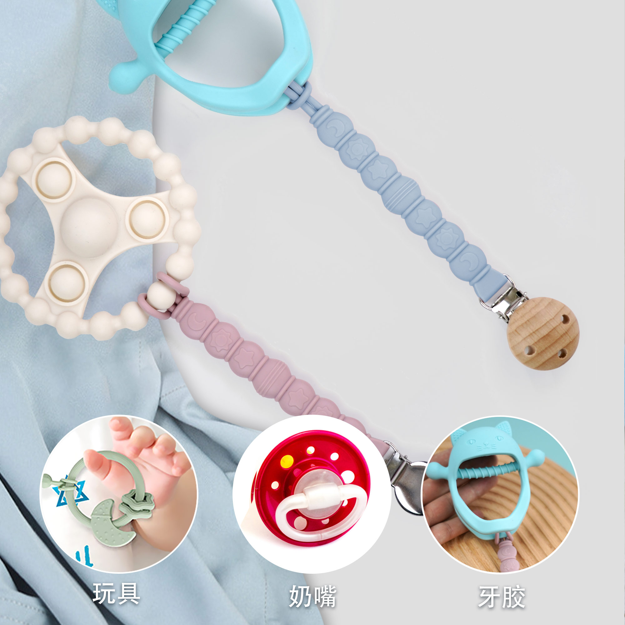 跨境安撫寶寶牙膠 防掉鏈硅膠奶嘴鏈 嬰兒食品級可水煮防掉鏈牙膠