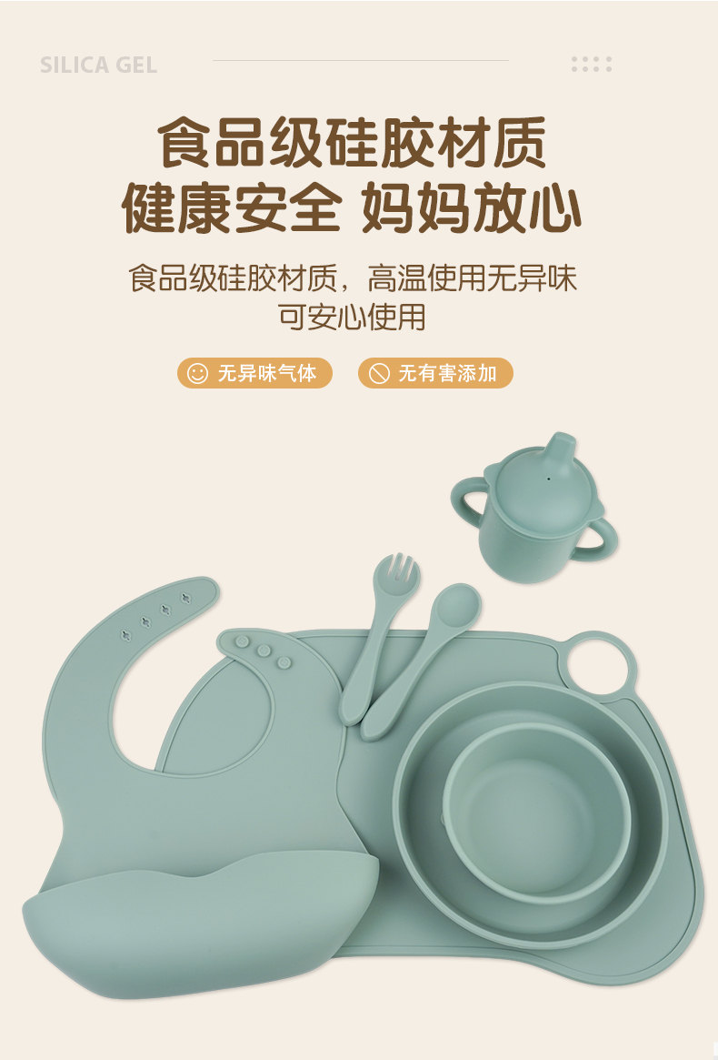 口水兜+碗+叉勺+餐盤+學(xué)飲杯+餐墊