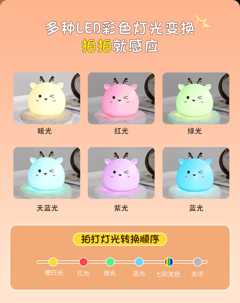 您的位置:首頁(yè) > 產(chǎn)品中心 > 硅膠家居用品 > 拍拍燈 > 小鹿硅膠小夜燈 拍拍感應(yīng)燈喂奶起夜燈