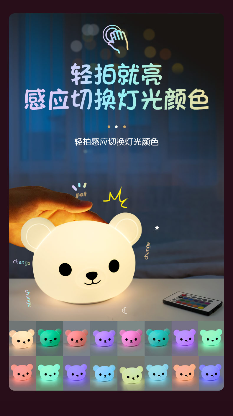 您的位置:首頁 > 產(chǎn)品中心 > 硅膠家居用品 > 拍拍燈 > 卡通可愛小熊拍拍燈夜 硅膠拍拍燈