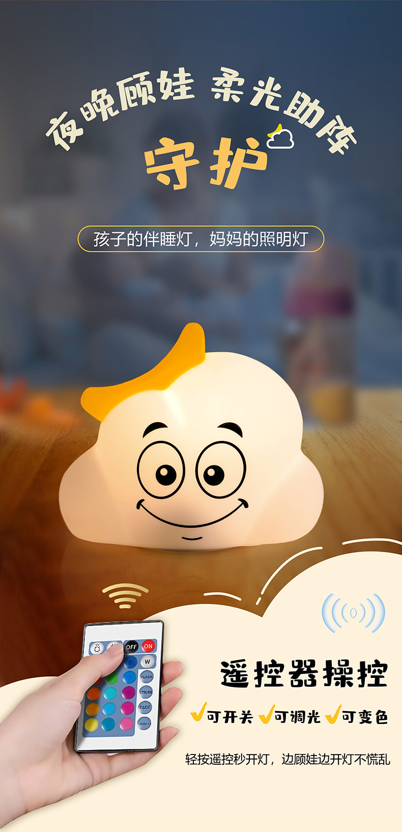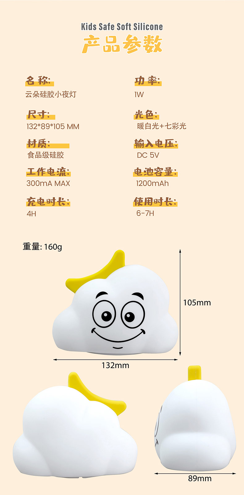 云朵硅膠小夜燈 兒童玩具臥室氛圍燈 網(wǎng)紅生日禮物床頭伴睡拍拍燈
