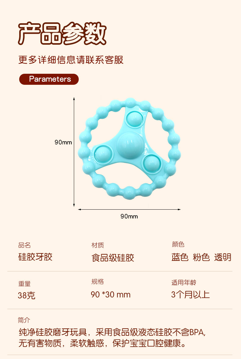 簡(jiǎn)介:純凈硅膠磨牙玩具,采用食品級(jí)液態(tài)硅膠不含BPA,